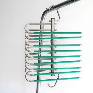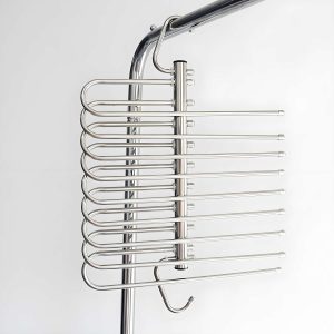 โต๊ะเก็บกางเกง นี้ใช้วัสดุสแตนเลสคุณภาพสูงทนทานและไม่เป็นสนิมง่าย การออกแบบที่เป็นเอกลักษณ์สามารถรองรับเอวและสะโพกของกางเกงได้อย่างสมบูรณ์แบบหลีกเลี่ยงการเสียรูปผ่านแถบแนวตั้งตรงกลางและแถบไขว้ทั้งสองด้าน ในขณะเดียวกันแถบครอสโอเวอร์ได้รับการออกแบบให้มีความคล่องตัวและสามารถปรับได้อย่างอิสระตามความกว้างของกางเกงเพื่อให้พอดีกับกางเกงทุกขนาด